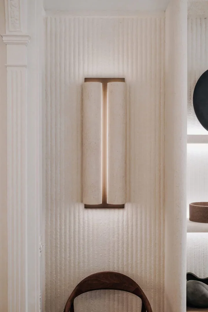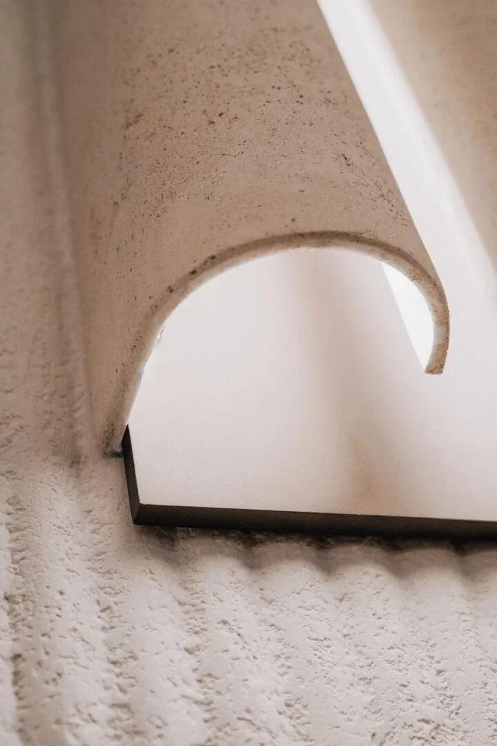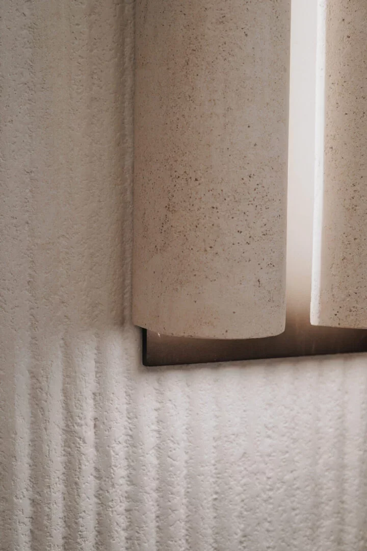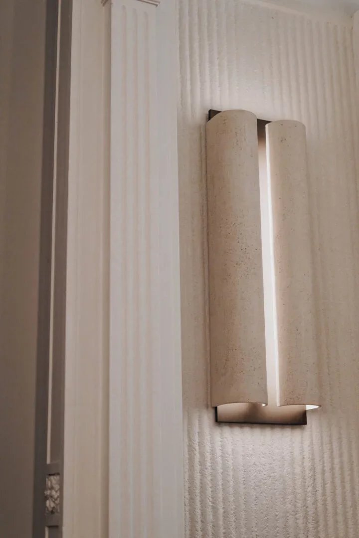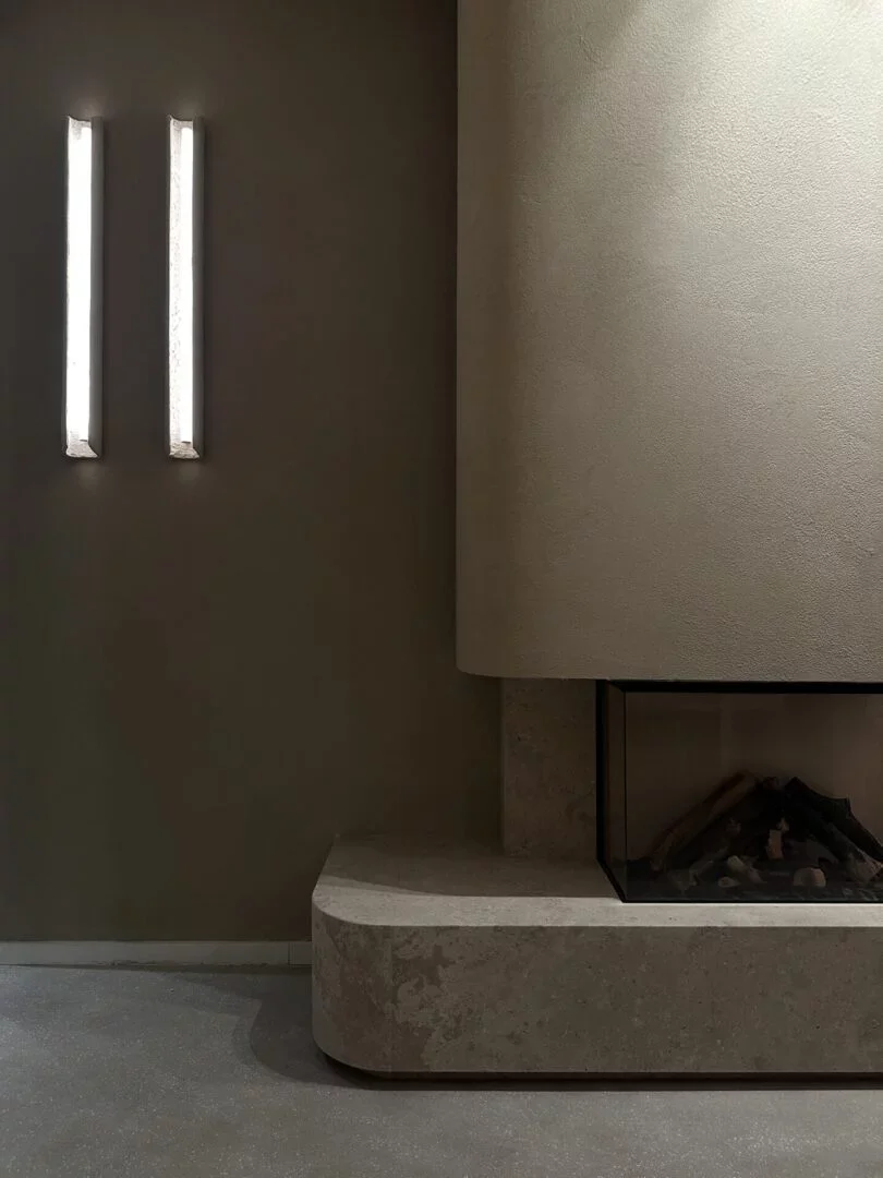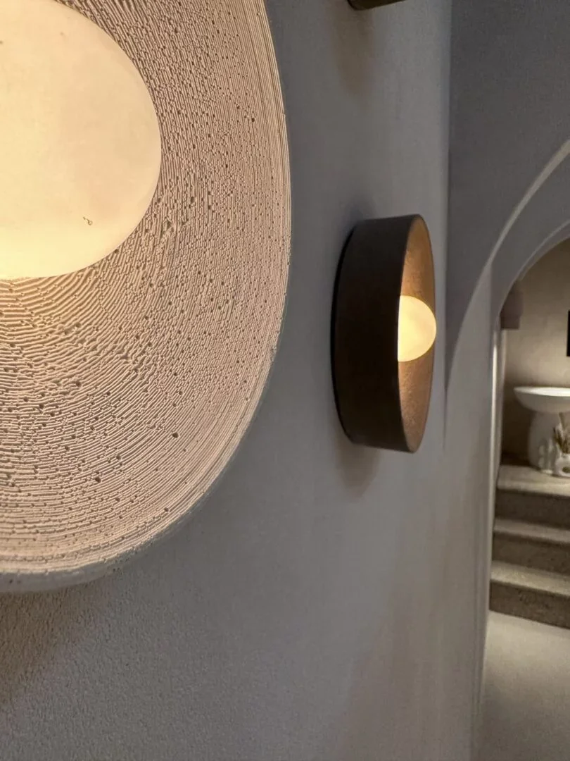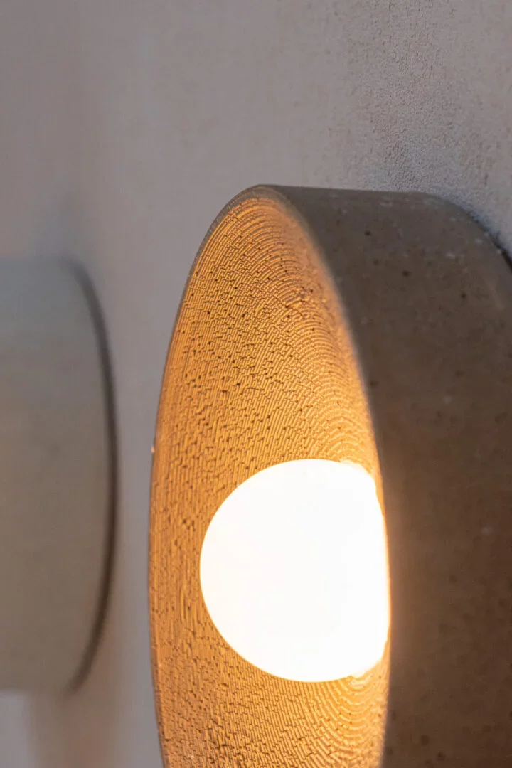 Volledig in microbeton, is deze lamp een transformatief kunstwerk.