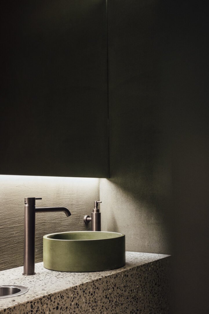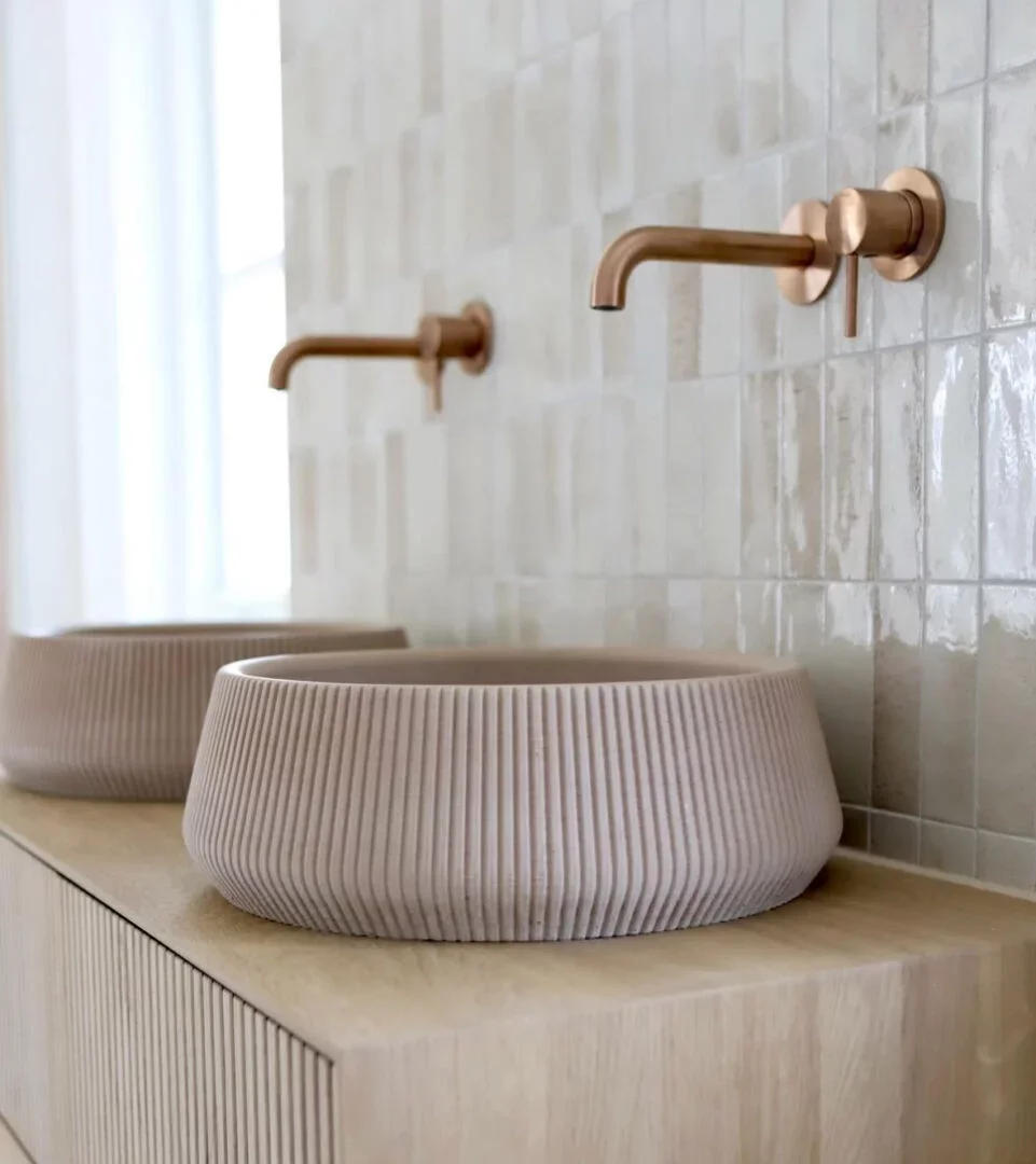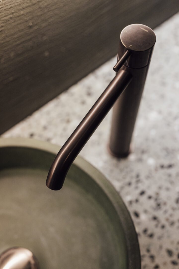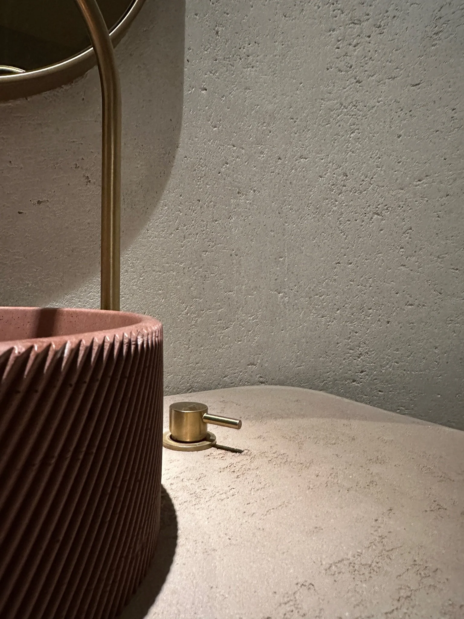 Bij het betreden van de badkamer trekt het verfijnde ontwerp van de ‘Pretty Woman’ waskom onmiddellijk de aandacht.