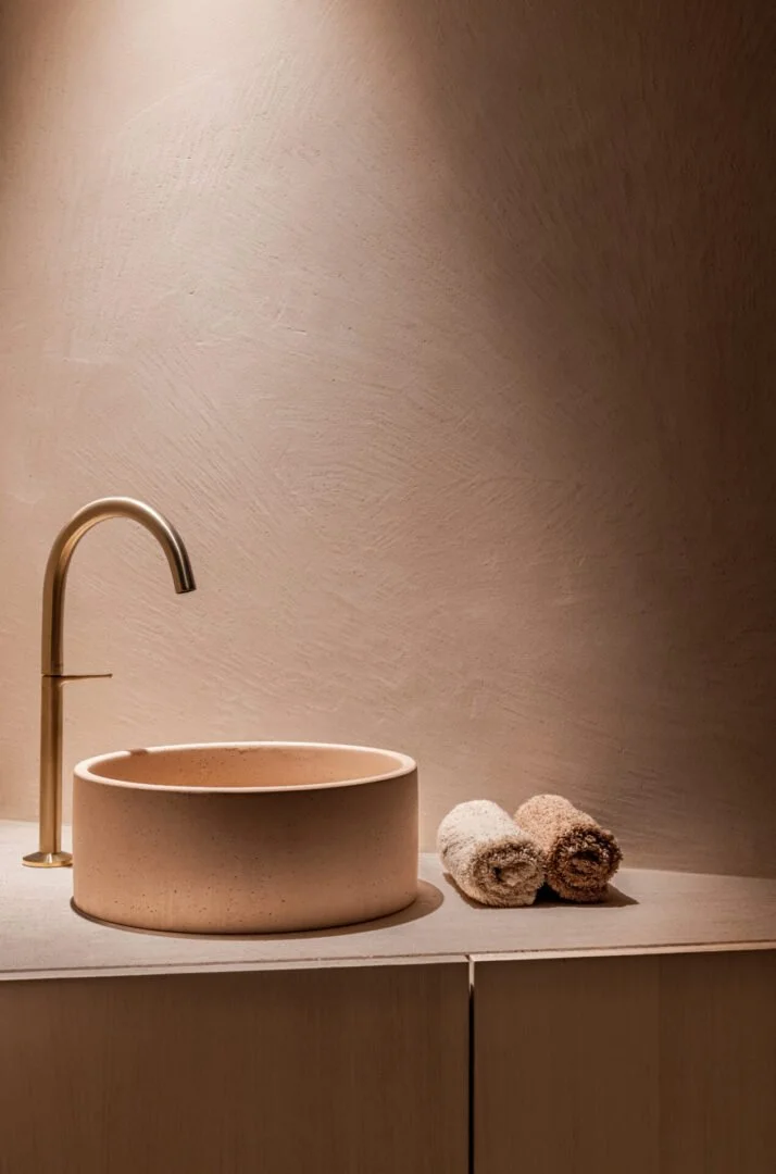 Het ontwerp van de ‘Mykonos’ waskom, met zijn gladde oppervlak en matte afwerking, brengt verfijnde eenvoud in je ruimte.